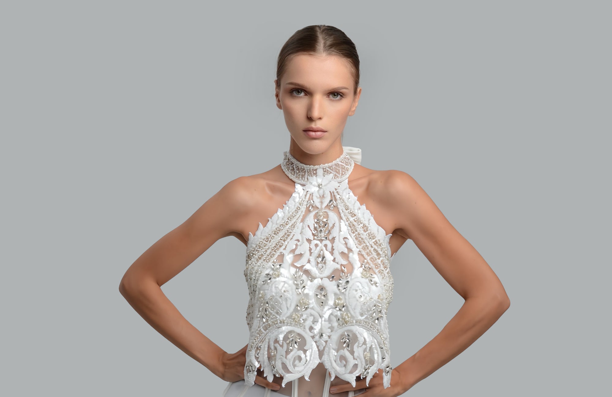 This exquisite collar necklace is locally handcrafted by skilled artisans, combining timeless elegance with meticulous attention to detail. Each piece is thoughtfully made by hand, showcasing the beauty of traditional craftsmanship while embodying a modern couture appeal—an accessory that speaks of sophistication, artistry, and enduring style.